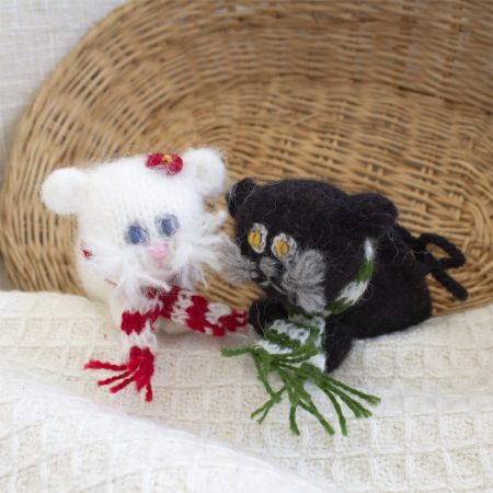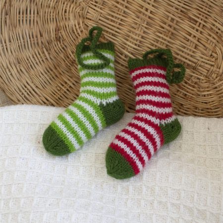 Set of 2 Handmade X-mas knitted ornaments. Made with natural fibers.